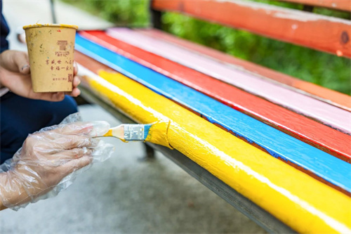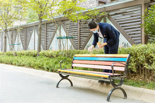 盛世名門的業主都知道,每年盛世名門物業都會拿出專項資金,用于老小區煥新改造,提升家園環境,為美好生活加碼,此次煥新行動,還將園區內經過風吹日曬的木質休閑椅刷上彩虹色。