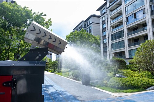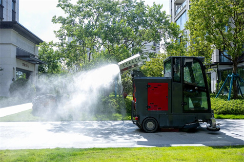 它集清掃、灑水、吸塵為一體,能夠輔助清潔不同污漬,前輪處四刷清掃系統,每個掃刷具有獨立的噴霧控塵裝置,在作業時,邊清掃邊噴霧除塵,就算有業主從旁邊經過,也不會被灰塵污染。 ? 實拍圖