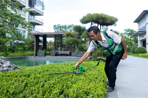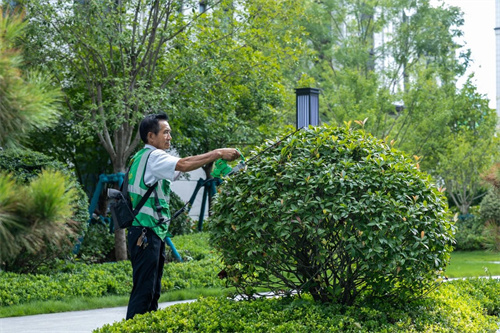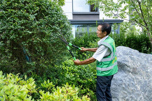 瞧!參差不齊的綠化經過一番精雕細琢,變得錯落有致、整齊美觀,一陣微風吹過,空氣中彌漫著花草的清新,沁人心脾。這一切的辛苦勞作,都只為讓美好的時光在盛世名門四季流淌。