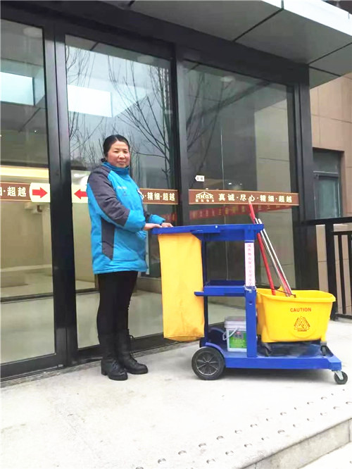 可愛可敬的保潔員們推起保潔車
